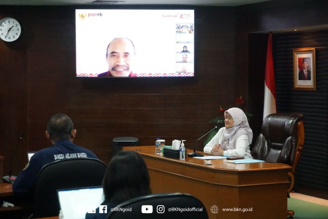 Rapat yang dilaksanakan secara luring dan daring ini, diikuti oleh sekitar 80 peserta, yakni Pejabat Pimpinan Tingggi Pratama di lingkungan BKN Pusat dan seluruh Kepala Kantor Regional BKN I – XIV.