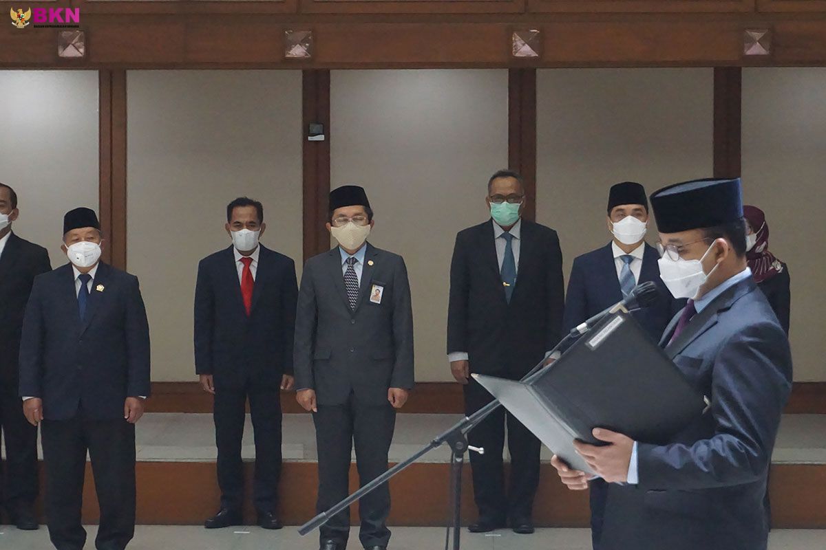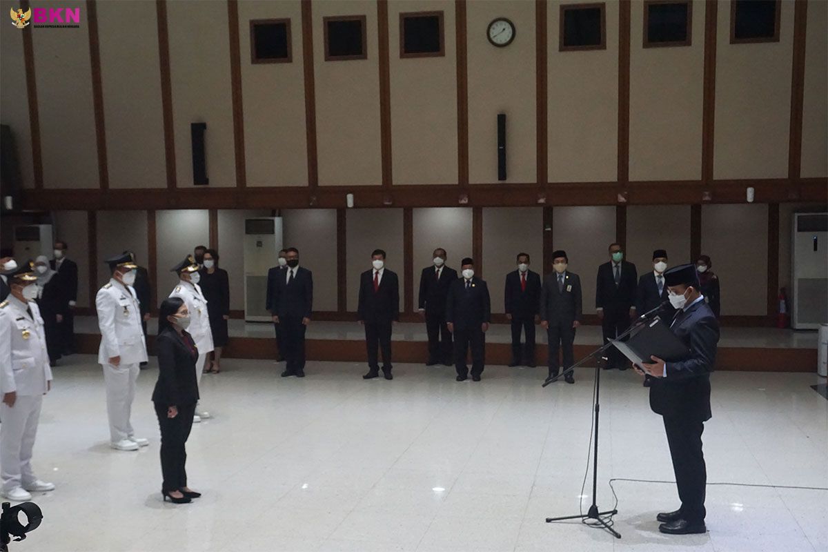 2021 » 23-02-2021 - Pelantikan & Pengambilan Sumpah Jabatan Pejabat Pimpinan Tinggi di lingkungan Pemprov JKT, pengukuhan Kakanreg 5