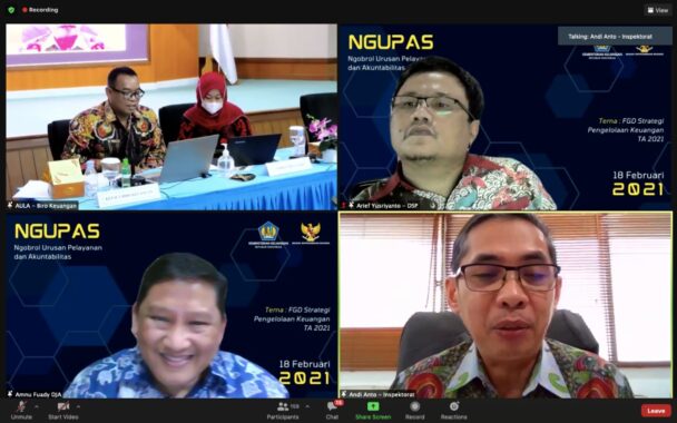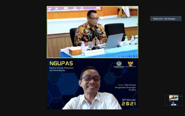Pembahasan Ngupas kali ini, dimoderatori oleh Kepala Biro Keuangan Wahyu dengan menghadirkan 3 narasumber, yakni Direktur Pelaksanaan Anggaran Kementerian Keuangan Sudarso, Kasubdit Standar Biaya Kementerian Keuangan Amnu Fuadiy dan Kepala KPPN Jakarta III Arinto Sujatmono. Pembahasan strategis kali ini terkait Peraturan Menteri Keuangan tentang Standar Biaya Masukan Tahun Anggaran 2021, Peraturan Menteri Keuangan tentang Perubahan Atas Peraturan Menteri Keuangan tentang Standar Biaya Masukan Tahun Anggaran 2020 dan langkah – langkah strategis pelaksanaan anggaran tahun 2021 agar menghasilkan output yang proporsional dan bermanfaat.