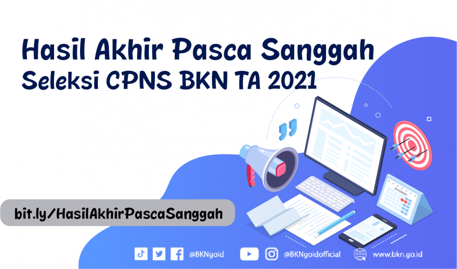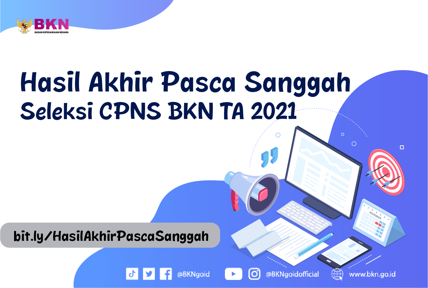 Merujuk pada Pengumuman Ketua Panitia Pengadaan Calon Pegawai Negeri Sipil (CPNS) Badan Kepegawaian Negara (BKN) Tahun Anggaran (T.A.) 2021 Nomor: 17/PANPEL.BKN/CPNS/XII/2021 tanggal 23 Desember 2021 tentang Hasil Akhir Seleksi Calon Pegawai Negeri Sipil Badan Kepegawaian Negara Tahun Anggaran 2021.