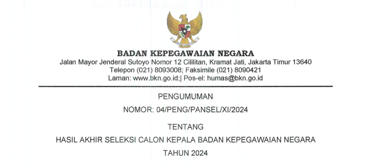 Hasil Akhir Seleksi Calon Kepala BKN Tahun 2024
