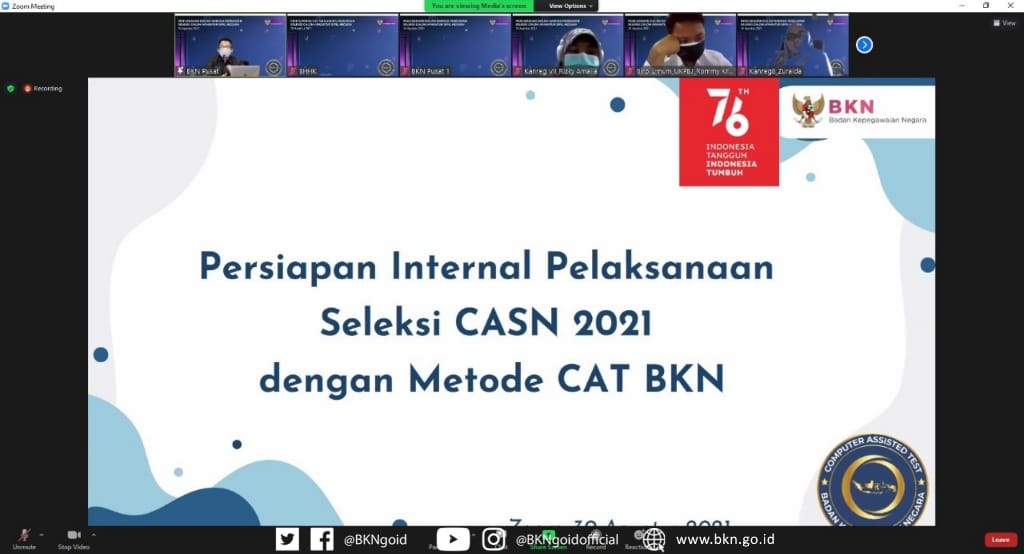Jakarta – Humas BKN, Menjelang penyelenggaraan seleksi Kompetensi Dasar (SKD) CPNS tahun 2021, Plt Kepala Badan Kepegawaian Negara (BKN) Bima Haria Wibisana menekankan kepada pegawai BKN yang akan ditugaskan sebagai Tim Petugas CAT untuk menjaga integritas dan transparansi sistem CAT. “Sebagai petugas harus jujur, akuntabel, dan bertanggung jawab terhadap proses seleksi khususnya di Tilok. Jangan sampai ada penyalahgunaan sistem oleh siapa pun dan pihak mana pun,” terangnya dalam Rapat Koordinasi Arahan Pimpinan BKN untuk Persiapan Seleksi CASN 2021, Senin (30/8/2021) yang diikuti seluruh petugas CAT BKN.