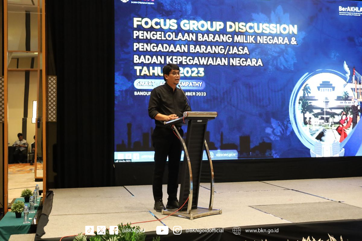 Kegiatan FGD ini diselenggarakan oleh Biro Umum BKN dan dihadiri oleh 85 peserta yang terdiri dari 51 orang dari BKN Pusat, 30 orang dari Kantor Regional BKN seluruh Indonesia, 1 orang dari Pemerintah Provinsi Jawa Barat dan 1 orang dari Pemerintah Kota Bandung. Kegiatan ini sendiri telah dilaksanakan selama 3 hari, yakni Kamis-Sabtu (14-16/9/23) berpusat di Hotel Aston Pasteur. Narasumber dalam kegiatan ini berasal dari Direktorat Jenderal Kekayaan Negara Kementerian Keuangan dan Lembaga Kebijakan Pengadaan Barang/Jasa Pemerintah.