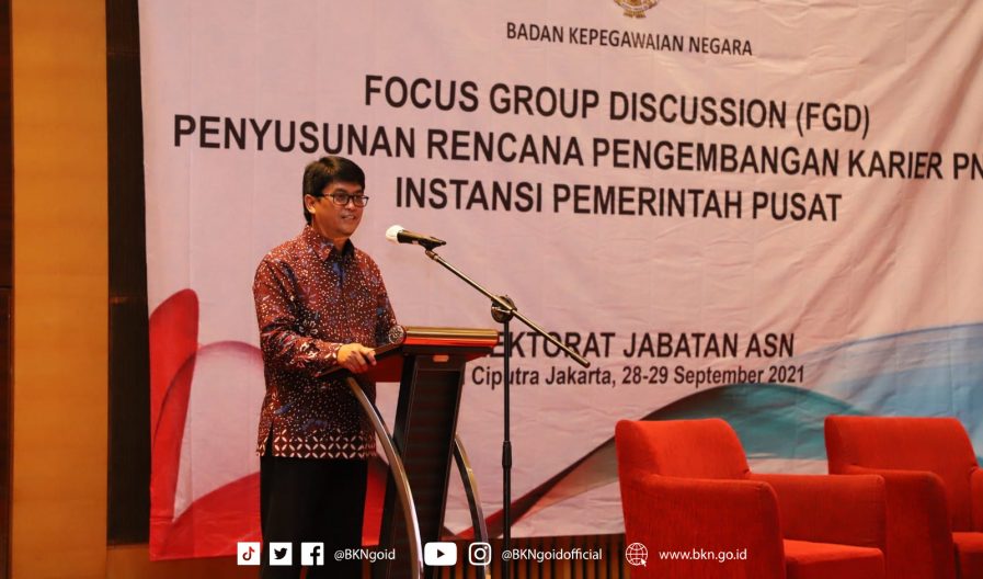 Pada kesempatan yang sama, Direktur Jabatan Aparatur Sipil Negara (ASN), Sri Gantini menyampaikan bahwa tujuan FGD ini akan fokus pada pembahasan pola karir, rencana pengembangan karir, dan melakukan pembimbingan rencana pengembangan karir.