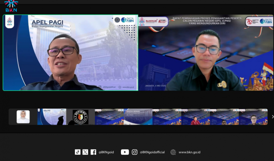 Pada kesempatan yang sama, Kepala Pusat Perencanaan Kebutuhan ASN Mohammad Ridwan mengingatkan para pengelola kepegawaian iintansi agar segera mengusulkan pergantian pelamar kepada Ketua Panselnas untuk mendapatkan pengganti sesuai dengan Peraturan Menteri PANRB 6 Tahun 2024. Instansi dapat melakukan 2 (dua) opsi, yakni melakukan pengolahan ulang dengan permohonan penggantian peserta, dan melakukan permohonan pengolahan ulang tanpa pengganti. “Instansi dapat melakukan permohonan usulan pergantian peserta melalui sistem paling lama tanggal 09 Mei 2025. Secara administrasi BKN akan menutup pintu penggantian pada tanggal 09 Mei 2025 melalui sistem,” terangnya.