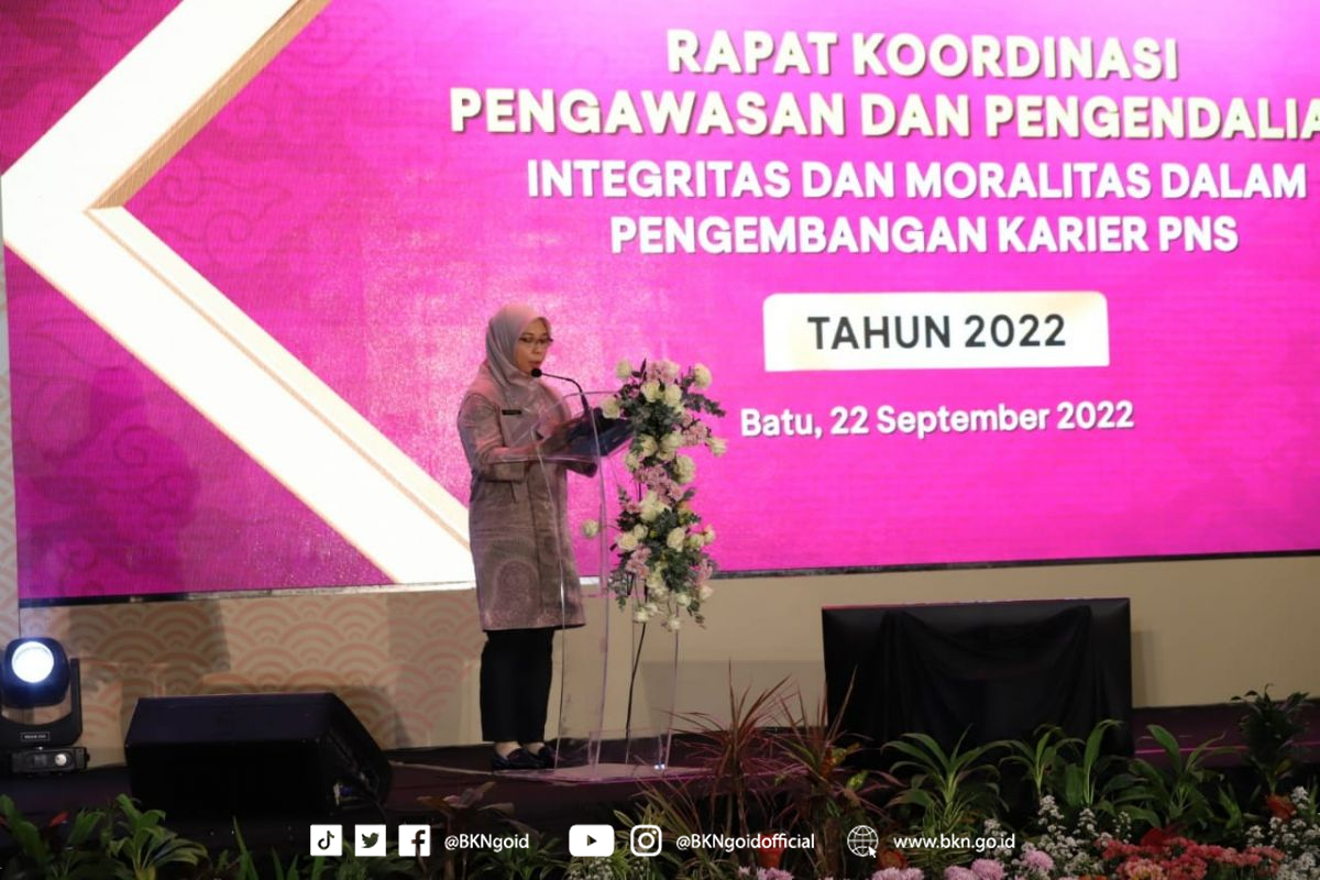 Kota Batu – Humas BKN Surabaya, Mewujudkan integritas dan moralitas Pegawai Negeri Sipil (PNS) merupakan pekerjaan rumah bagi Badan Kepegawaian Negara (BKN) selaku instansi pembina dan pengelola kepegawaian. Hal tersebut sebagaimana disampaikan oleh Supranawa Yusuf, Wakil Kepala BKN dalam membuka Rapat Koordinasi Pengawasan dan Pengendalian Integritas dan Moralitas dalam Pengembangan Karier PNS pada Kamis (22/09/2022).