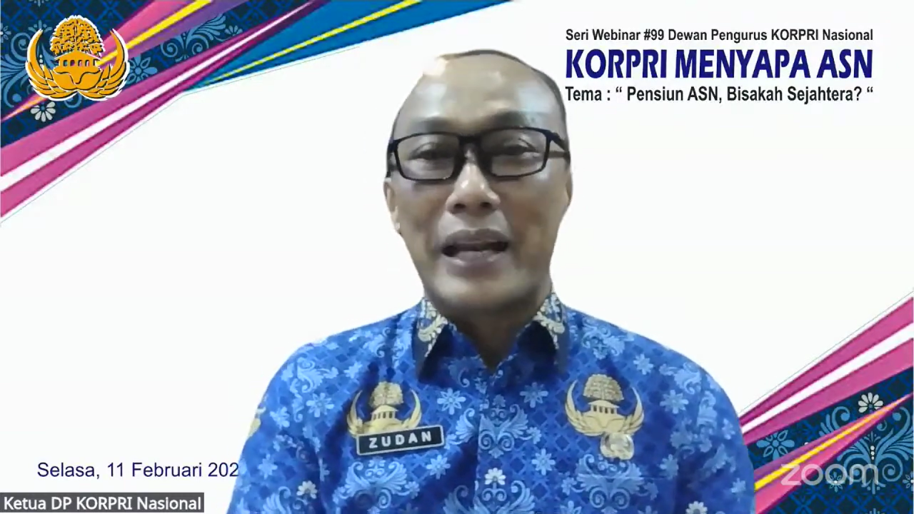 Jakarta – Humas BKN, Sebagai upaya meningkatkan kesejahteraan pensiunan Aparatur Sipil Negara (ASN), Korps Pegawai Republik Indonesia (KORPRI) kembali menyelenggarakan webinar seri ke-99 dengan tema ‘Pensiun ASN, Bisakah Sejahtera?’. Webinar yang digelar secara daring ini menjadi wadah diskusi konstruktif untuk membahas permasalahan sistem pensiun PNS yang dinilai belum maksimal dalam memberikan kesejahteraan bagi para pensiunan.