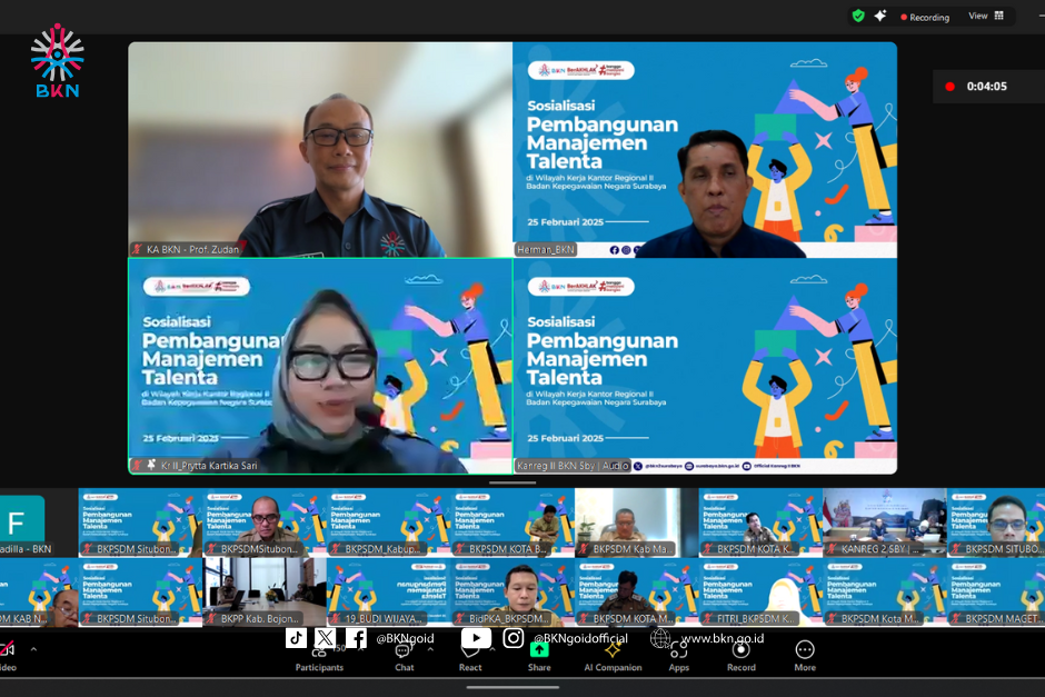 “Saya harap dengan adanya sosialisasi ini, momentum untuk menciptakan kolaborasi yang lebih kuat lagi antara BKN dengan pemerintah daerah dapat terwujud, terutama Instansi Pemerintah Daerah di Jawa Timur. Setiap upaya yang BKN lakukan dalam membangun manajemen talenta adalah investasi untuk membangun ASN yang unggul serta menjadi garda terdepan dalam membangun kemajuan di daerah. Dengan begitu, minimal 75% dari total instansi daerah yang memiliki komitmen untuk turut serta membangun manajemen talenta. Prosesnya bisa dibuat secara bertahap dan parsial dengan tujuan setiap instansi memiliki komitmen yang kuat untuk mewujudkan terciptanya manajemen talenta,” jelasnya melalui media daring, Selasa (25/02/2025).