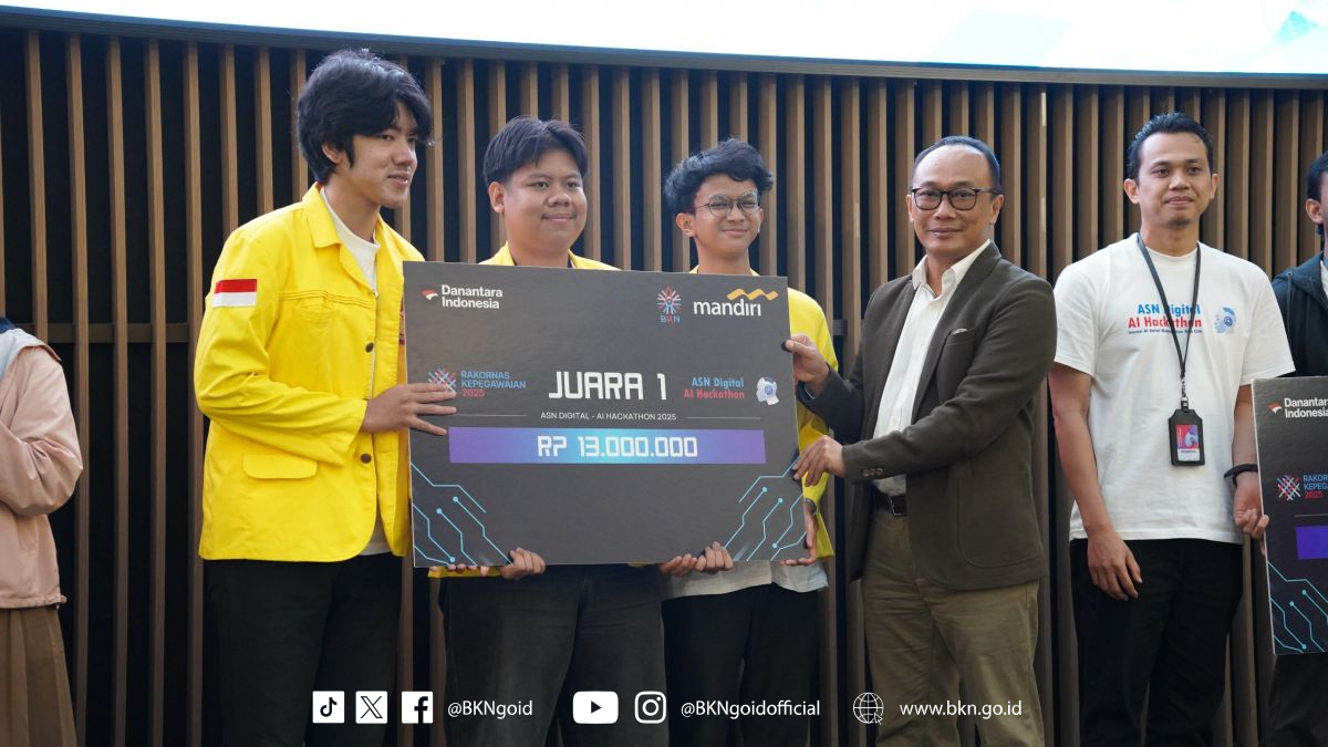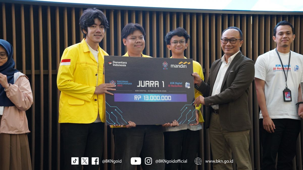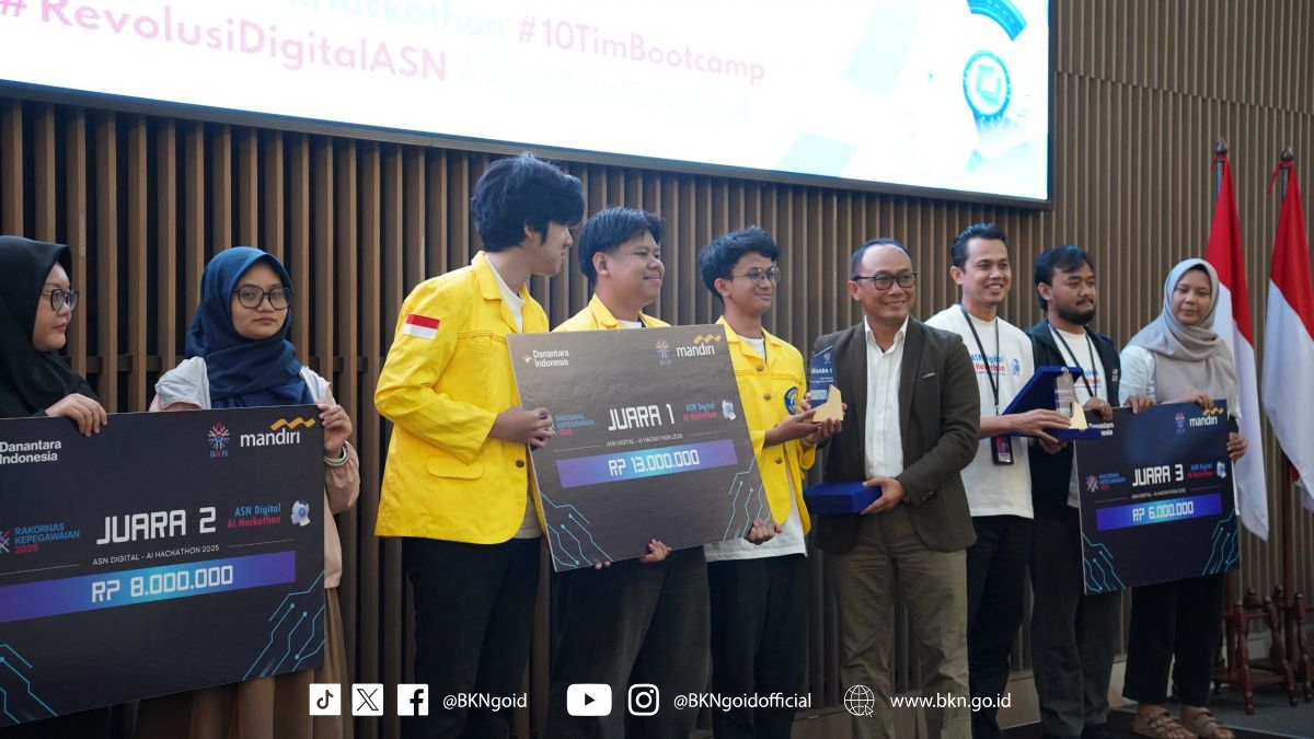 Bogor – Humas BKN, Dalam ajang Kompetisi ASN Digital AI Hackathon 2025, peserta pada tahap bootcamp yang berhasil memformulasikan gagasan berbasis kecerdasan buatan (AI) menjadi solusi konkret bagi manajemen ASN ditetapkan sebagai 3 (tiga) inovator terbaik. Kompetisi yang digelar Badan Kepegawaian Negara (BKN) melalui unit Kedeputian Sistem Informasi dan Digitalisasi Manajemen ASN ini menutup rangkaian kegiatan bootcamp di Pusbang SDM Ciawi, Bogor pada 10 s.d 14 November 2025.