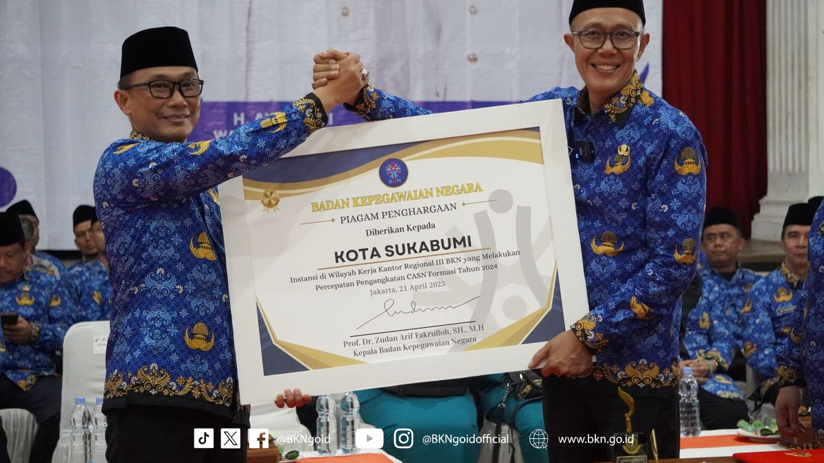 “Kami mengapresiasi komitmen Pemkot Sukabumi dalam penyelesaian pengangkatan ASN, khususnya ASN yang mengikuti seleksi CASN T.A. 2024. Ini merupakan bentuk sinergi pusat-daerah dalam pembangunan SDM birokrasi,” terangnya di tengah Penyerahan Surat Keputusan atau SK Pengangkatan ASN Pemkot Sukabumi. Terhitung 167 ASN Pemkot Sukabumi yang baru dilantik terdiri dari 46 CPNS Formasi Umum 2024; 109 PPPK 61 Teknis, 22 Kesehatan, & 26 Guru); 5 CPNS (Lulusan STTD 2024); dan 7 PNS (Lulusan STTD & IPDN Formasi 2023).