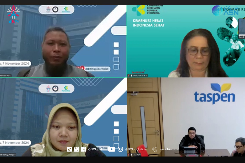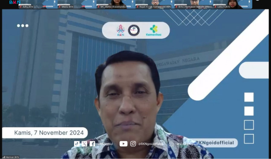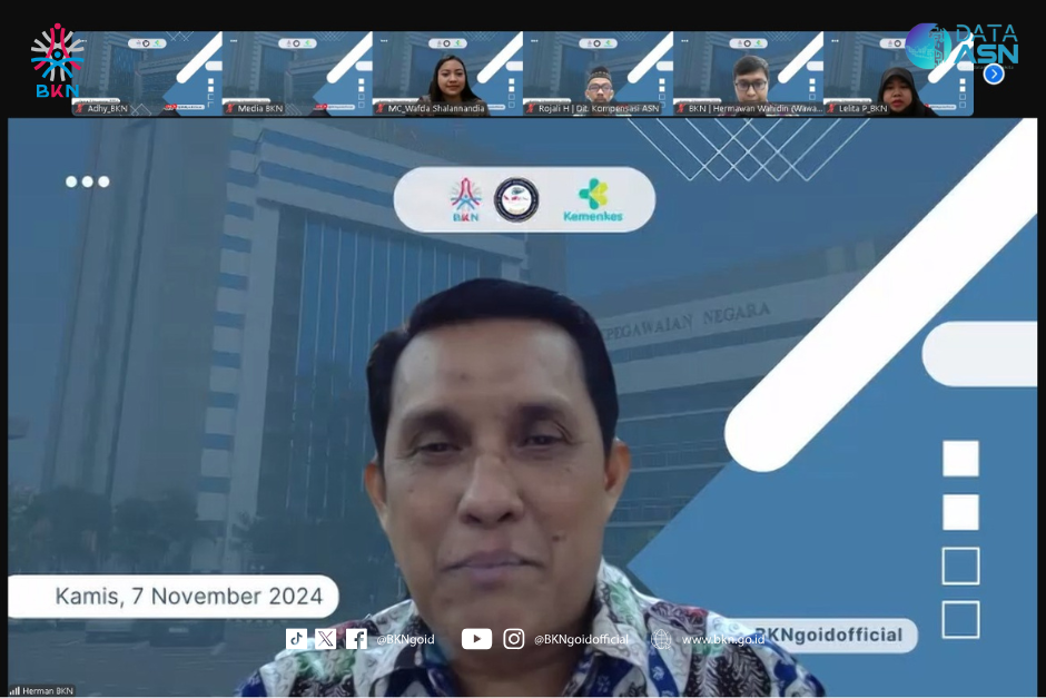Jakarta – Humas BKN, Badan Kepegawaian Negara (BKN) melalui Direktorat Kompensasi Aparatur Sipil Negara (ASN) menyelenggarakan kegiatan webinar yang bertajuk “Kupas Tuntas Keselamatan dan Kesehatan Kerja (K3) di Instansi Pemerintah” berlangsung pada Kamis (07/11/2024). Acara ini membahas pentingnya perlindungan bagi pegawai ASN, terutama terkait dengan Undang-Undang Nomor 20 Tahun 2023 tentang ASN, yang menggantikan Undang-Undang Nomor 5 Tahun 2014. BKN bersama Kementerian Kesehatan menyoroti urgensi K3 dalam menghadapi tantangan di dunia kerja saat ini dan acara ini juga untuk memperkuat komitmen dalam menciptakan lingkungan kerja yang aman dan sehat bagi pegawai, khususnya di lingkungan ASN.
