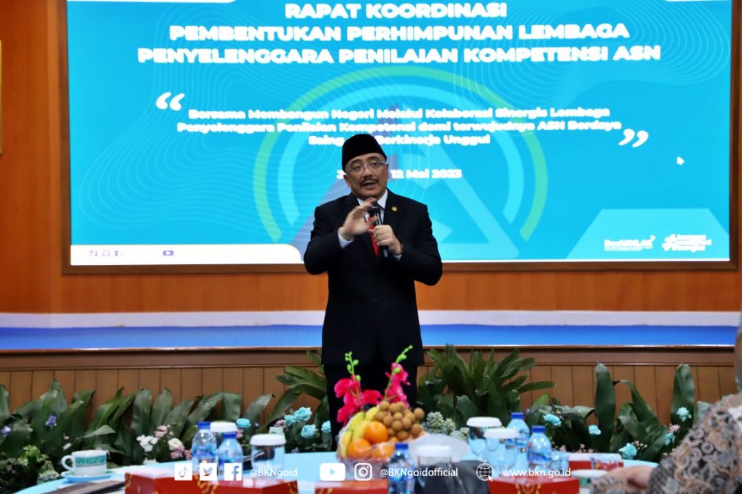 Jakarta – Humas BKN, Pelaksanaan Rapat Koordinasi Persiapan Pembentukan Perhimpunan Lembaga Penilaian Kompetensi ASN pada Jumat (12/5/2023) bertujuan untuk berkolaborasi dan memperkuat peran lembaga penilaian kompetensi ASN. Kolaborasi dan sinergi penilaian potensi dan kompetensi ASN diperlukan selain karena tantangan jumlah ASN yang perlu dipetakan sangatlah besar yaitu lebih dari 4 juta PNS.