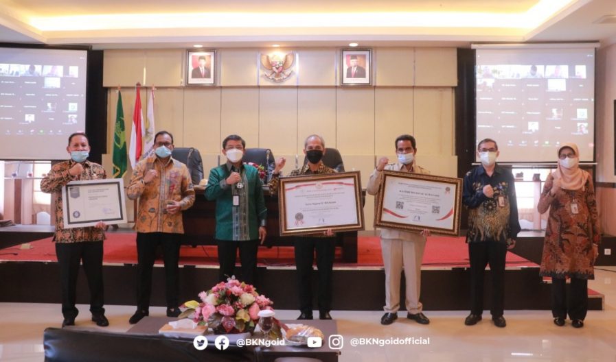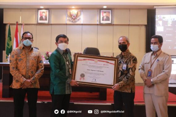 Manado-Humas BKN, Kepala Kanreg XI BKN Manado Dedi Herdi menyebutkan bahwa layanan kepegawaian di lingkungan Kanreg XI BKN dilakukan secara online dan tidak lagi memberlakukan layanan tatap muka. Tujuannya selain menghindari terjadinya potensi praktik gratifikasi, juga mempermudah layanan publik di tengah kondisi pandemi. “Kami akan selalu melakukan pengawasan atas tindak gratifikasi yang berpotensi muncul di Kanreg XI BKN Manado melalui Unit Pengendalian Gratifikasi (UPG). Selain itu untuk menghindari kontak langsung saat pelayanan, kami juga telah memanfaatkan digitalisasi dalam mengelola manajemen ASN,” terangnya saat menerima pengahargaan simbolis dari Wakil Kepala BKN, Supranawa Yusuf atas capaian Kanreg XI BKN Manado meraih predikat Wilayah Bebas Korupsi (WBK) Tahun 2020, Selasa (16/2/2021).