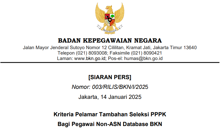 Nomor: 003/RILIS/BKN/I/2025