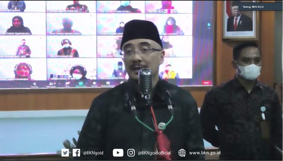 Jakarta – Humas BKN, Kepala BKN Bima Haria Wibisana menyebutkan eksistensi suatu profesi dapat terjadi jika terus melakukan perubahan. “Sekitar 70% profesi akan punah, tentu saja 30% sisanya tidak akan sama, harus ada kemampuan untuk mampu beradaptasi,” imbuhnya saat mengukuhkan 29 Asesor Sumber Daya Manusia (SDM) Aparatur dalam jabatan Pengurus Pusat dan Koordinator Wilayah Ikatan Asesor SDM Aparatur (IASA) Periode 2020 – 2025, Jumat (5/03/2021) yang digelar secara daring dan luring. Pengukuhan ini dilakukan sehubungan dengan telah berakhirnya kepengurusan Ikatan Asesor SDM Aparatur (IASA) periode 2015-2020.