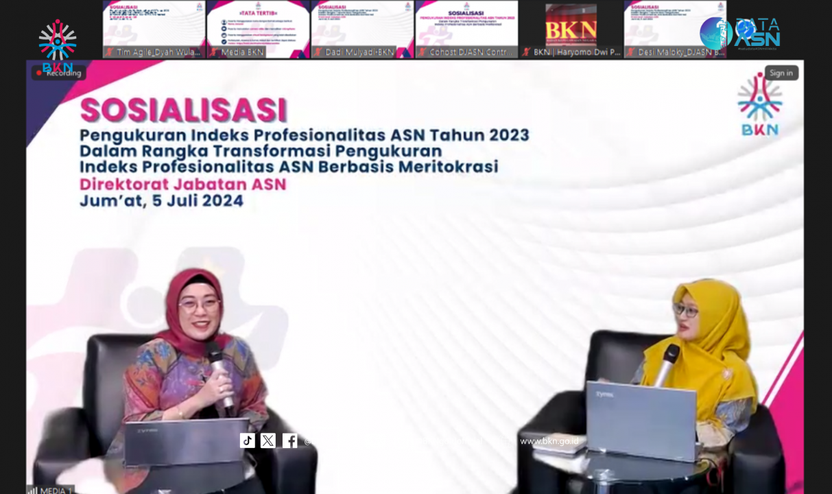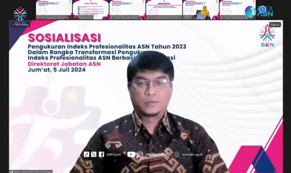 Jakarta – Humas BKN, Dengan ditetapkannya Undang-Undang (UU) Nomor 20 Tahun 2023 tentang Aparatur Sipil Negara (ASN) yang antara lain menyatakan bahwa manajemen ASN adalah serangkaian proses pengelolaan ASN untuk mewujudkan ASN yang profesional dengan hasil kerja tinggi dan perilaku sesuai nilai dasar ASN, bebas dari intervensi politik, serta bersih dari praktik korupsi, kolusi dan nepotisme (KKN). Badan Kepegawaian Negara (BKN) dalam hal ini mengadakan Sosialisasi Pengukuran Indeks Profesionalitas ASN (IP ASN) sebagai bagian dari pelaksanaan transformasi pengukuran IP ASN berbasis meritokrasi secara daring melalui zoom meeting dihadiri oleh Kepala Biro SDM/Kepegawaian Instansi Pusat, Kepala BKD/BKPDSM/BKPP Instansi Daerah, Pejabat Pimpinan Tinggi di lingkungan BKN dan Pengelola IP ASN Instansi Pemerintah sebanyak 500 orang melalui zoom meeting dan live Youtube BKN sebanyak kurang lebih 2.994 penonton dan dibuka oleh Plt. Kepala BKN, Haryomo Dwi Putranto.