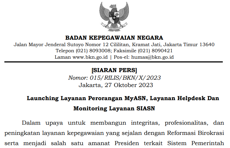 Nomor: 015/RILIS/BKN/X/2023