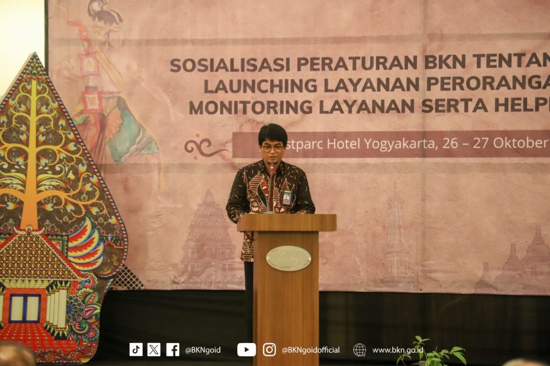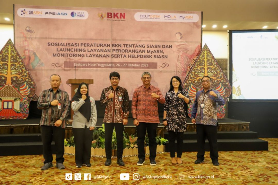 Plt Kepala BKN, Haryomo Dwi Putranto dalam sambutannya menjelaskan kemajuan teknologi ini harus kita manfaatkan dengan pengembangan digital yang dapat digunakan dan dirasakan kemudahannya oleh seluruh ASN, Ujarnya dalam acara Sosialisasi Peraturan BKN tentang Sistem Informasi Aparatur Sipil Negara (SIASN) dan Launching Layanan Perorangan MyASN, Monitoring Layanan (Mola) serta Helpdesk SIASN di Eastparc Hotel Yogyakarta, Kamis (26-27/10/2023).