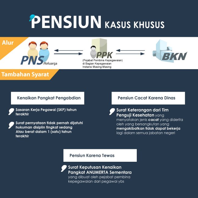 - Surat Keputusan Penetapan Tewas dari PPK (untuk pensiun janda/duda/orang tua karena PNS dinyatakan tewas).