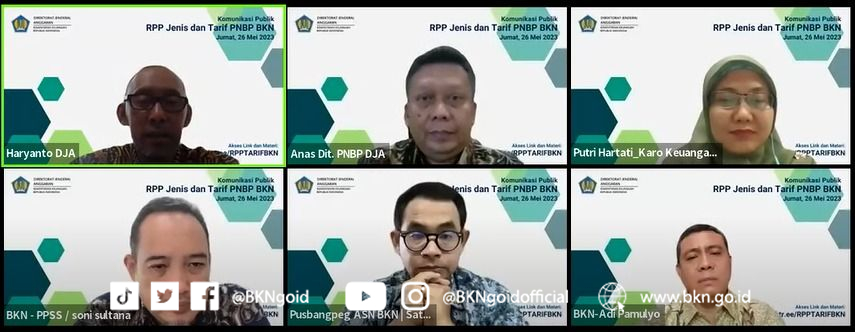 Hal tersebut disampaikan oleh Sekretaris Utama BKN Imas Sukmariah pada kegiatan Komunikasi Publik Rancangan Peraturan Pemerintah (RPP) tentang Jenis dan Tarif atas Jenis PNBP pada BKN yang diselenggarakan secara daring pada Jumat (26/5/2023). Adapun pihak yang menjadi peserta dalam kegiatan ini adalah Kementerian/Lembaga Pusat, Badan Layanan Umum, Universitas, dan Pemerintah Daerah. Komunikasi publik ini bertujuan untuk menyampaikan substansi perubahan PP Nomor 63 Tahun 2016 tentang Jenis dan Tarif atas Jenis PNBP yang berlaku di BKN, di antaranya seperti penyesuaian tarif layanan CAT yang melibatkan 8 (delapan) Kementerian/Lembaga pengguna layanan CAT dan sosialisasi terkait jenis layanan penilaian kompetensi yang ada di BKN kepada lembaga penilaian kompetensi di luar BKN.