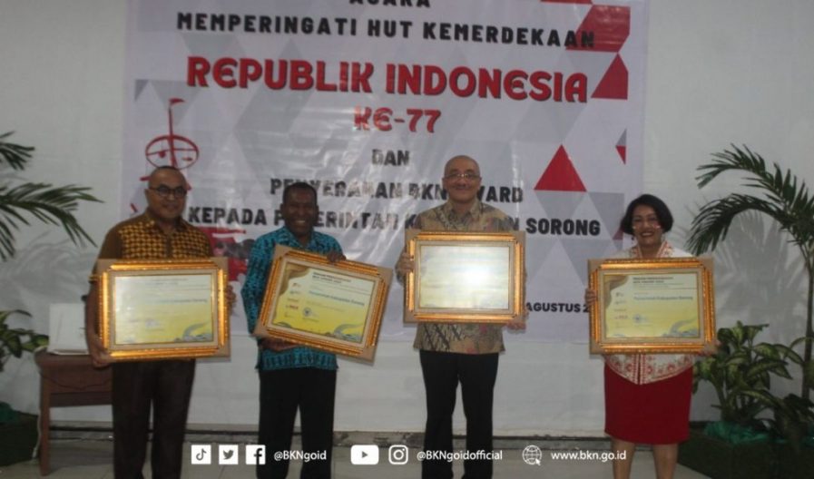 Pada kesempatan itu Plt didampingi Kepala Kantor Regional XIV BKN, Hardianawati dan diterima oleh Staf Ahli Bupati bidang kemasyarakatan Kabupaten Sorong, Luther Salamala dan Kepala BKDD Kabupaten Sorong, Chris J. Tupamahu. Selain menyerahkan BKN Awards, Plt Kepala BKN juga melakukan kunjungan dalam rangka menghadiri rangkaian kegiatan memeriahkan peringatan HUT ke-77 RI yang dilaksanakan oleh Kantor Regional XIV BKN.