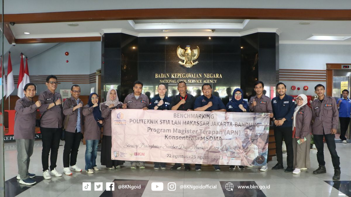 Jakarta – Humas BKN, Mahasiswa Program Magister Terapan Administrasi Pembangunan Negara Politeknik Sekolah Tinggi Ilmu Administrasi Lembaga Administrasi Negara (STIA LAN) Makassar melakukan studi banding dengan Badan Kepegawaian Negara (BKN) pada Selasa (23/8/2023). Kegiatan ini bertujuan untuk memahami strategi peningkatan Sumber Daya Manusia (SDM) di era digitalisasi layanan, khususnya yang diterapkan oleh BKN.