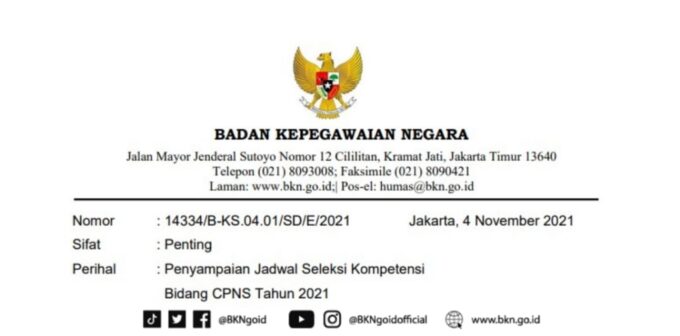 Satya juga menyampaikan bahwa Surat BKN Nomor 1433/B-KS.04.01/SD/E/2021 tanggal 04 November 2021 tentang Penyampaian Jadwal SKB CPNS Tahun 2021 sudah dilayangkan ke seluruh Instansi Pusat dan Instansi Daerah sebagai pedoman dasar bagi Instansi untuk menyiapkan rangkaian pelaksanaan SKB, termasuk panduan teknis penyiapan titik lokasi mandiri instansi sampai dengan penerapan protokol kesehatan saat ujian berlangsung.