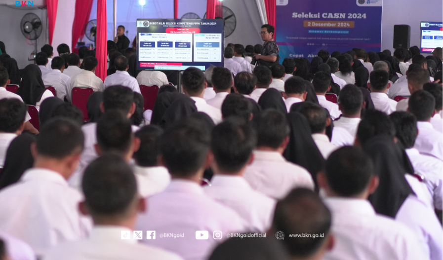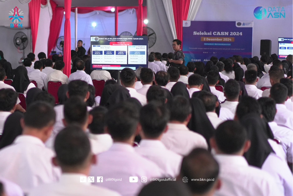 Jakarta – Humas BKN, Pelaksanaan seleksi kompetensi bagi pelamar seleksi Pegawai Pemerintah dengan Perjanjian Kerja atau PPPK untuk periode I dimulai hari ini pada Senin, 02 Desember dan terjadwal akan berlangsung hingga 19 Desember 2024 sesuai jadwal Panselnas melalui Surat Badan Kepegawaian Negara (BKN) Nomor 6610/B-KS.04.01/SD/K/2024 tentang Jadwal Seleksi Pengadaan PPPK Tahun Anggaran 2024. Sama halnya dengan ujian Seleksi Kompetensi Dasar atau SKD bagi pelamar Calon Pegawai Negeri Sipil (CPNS), pelaksanaan seleksi kompetensi PPPK dilakukan lewat metode Computer Assisted Test atau CAT BKN.