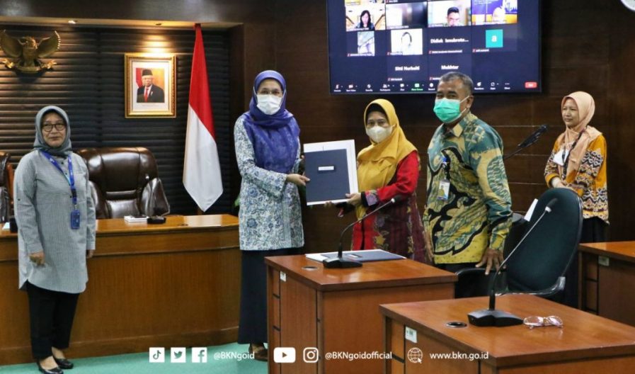Jakarta – Humas BKN, “Kami berharap setelah para pegawai yang pensiun bergabung dengan elemen masyarakat luas, dapat menjadi perpanjangan tangan dari masyarakat dalam memberikan masukan terhadap pelayanan publik yang diberikan oleh Badan Kepegawaian Negara,” ujar Sekretaris Utama BKN, Imas Sukmariah dalam sambutannya pada Pelepasan Calon Purna Bhakti BKN TMT 1 Mei 2023 di Ruang Data, Lt.2 Gedung 1, Kantor Pusat BKN yang diselenggarakan oleh Biro Sumber Daya Manusia BKN pada Jumat (14/4/2023).