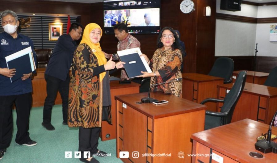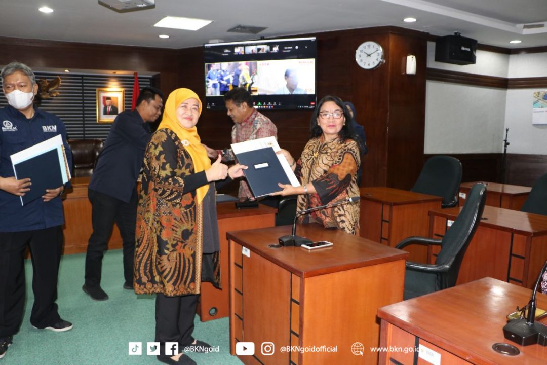 Jakarta – Humas BKN, Badan Kepegawaian Negara melakukan kegiatan Pelepasan Purnabakti TMT 1 Juli 2023, Selasa (27/06/2023), di ruang data Gedung 1 Lantai 2 BKN Pusat Jakarta dan secara daring. Pada periode ini BKN melepas sebanyak 10 (sepuluh) Orang Purnabakti yang terbagi dari 4 (empat) orang pegawai kantor Pusat BKN dan 6 (enam) orang pegawai Kantor Regional BKN, yaitu Kanreg I Yogyakarta, Kanreg II Surabaya, Kanreg III Bandung, Kanreg VI Medan, Kanreg XI Manado, Kanreg XIV Manokwari. pelepasan ini diwakili oleh Imas Sukmariah selaku Sekretaris Utama BKN dan Tri Buna Putra Jaya selaku Branch Manager PT. Taspen KCU Jakarta.