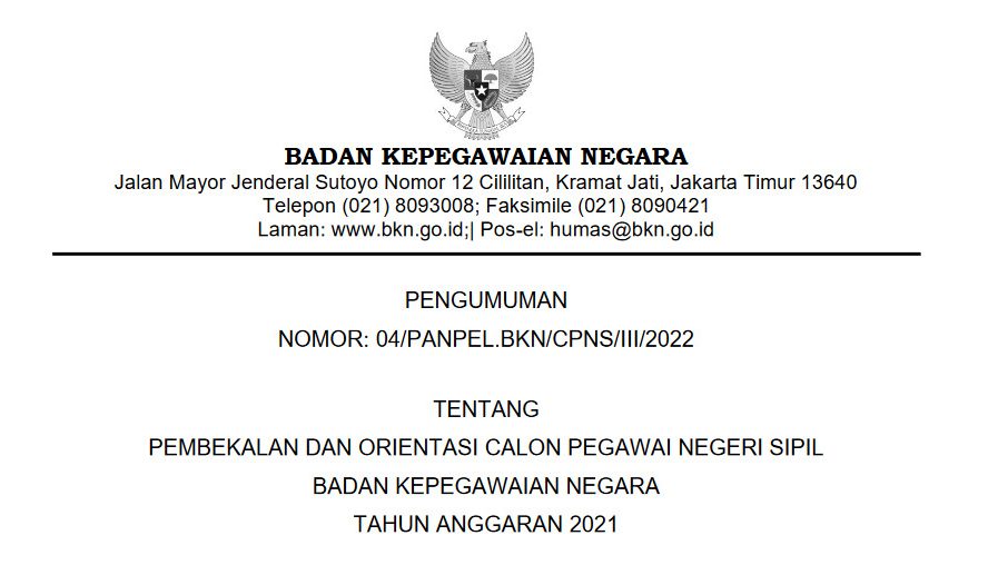 Informasi selengkapnya: Pengumuman Orientasi CPNS BKN TA 2021