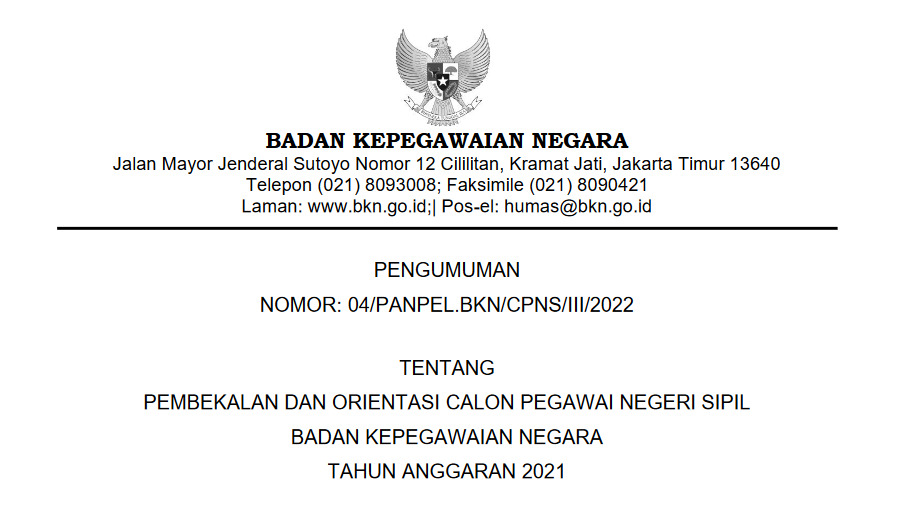 Informasi selengkapnya: Pengumuman Orientasi CPNS BKN TA 2021