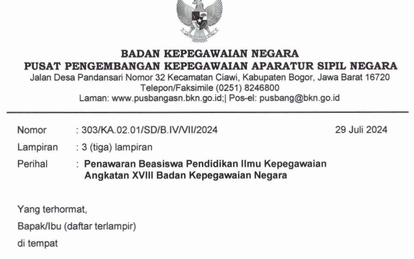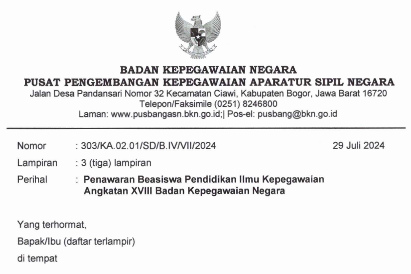 Penawaran Beasiswa Pendidikan Ilmu Kepegawaian Angkatan XVIII Badan Kepegawaian Negara