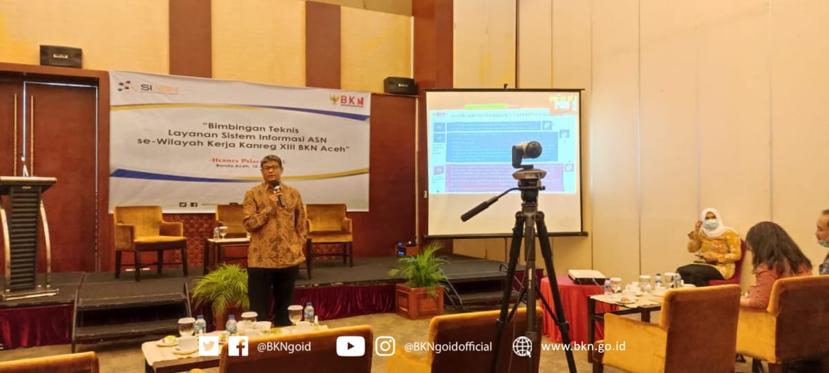 Aceh – Humas BKN, Pada pelaksanaan Bimbingan Teknis Implementasi Sistem Informasi ASN (SIASN) serta Pemutakhiran Data Mandiri (PDM) ASN dan PPT, Non-ASN Instansi Pusat di kota Banda Aceh, Kamis (10/6/2021), Wakil Kepala BKN, Supranawa Yusuf berkesempatan membuka acara yang diikuti oleh Instansi Pemerintah se-wilayah kerja Kantor Regional XIII BKN Aceh tersebut.