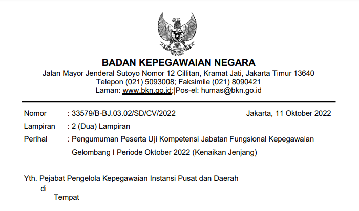 Pengumuman Peserta Uji Kompetensi Jabatan Fungsional Kepegawaian Gelombang I Periode Oktober 2022 (Kenaikan Jenjang)
