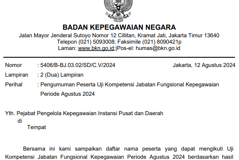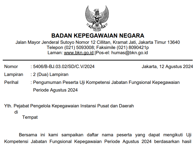 Pengumuman Peserta Uji Kompetensi Jabatan Fungsional Kepegawaian Periode Agustus 2024