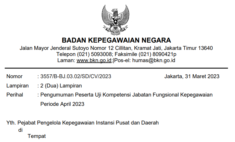 Pengumuman Peserta Uji Kompetensi Jabatan Fungsional Kepegawaian Periode April 2023
