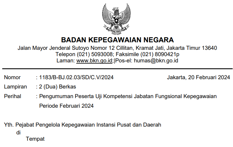 Pengumuman Peserta Uji Kompetensi Jabatan Fungsional Kepegawaian Periode Februari 2024