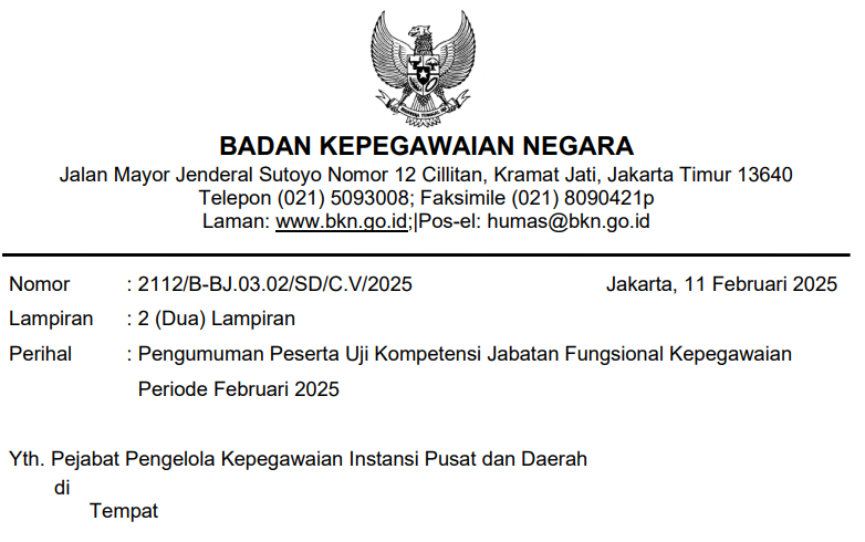Pengumuman Peserta Uji Kompetensi Jabatan Fungsional Kepegawaian Periode Februari 2025