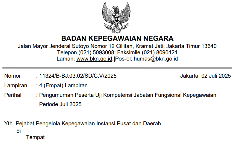 Pengumuman Peserta Uji Kompetensi Jabatan Fungsional Kepegawaian Periode Juli 2025