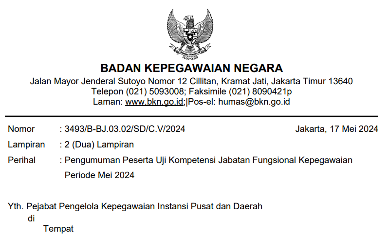 Pengumuman Peserta Uji Kompetensi Jabatan Fungsional Kepegawaian Periode Mei 2024