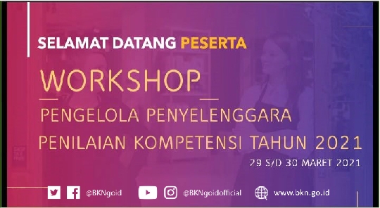 Jakarta – Humas BKN, Sebagai Instansi Pembina dalam penyelenggaraan penilaian kompetensi ASN, Badan Kepegawaian Negara (BKN) tidak hanya secara aktif mengawal pelaksanaan penilaian kompetensi ASN di lingkup Pusat dan Daerah, tetapi juga memberi pendampingan kepada pengelola penyelenggara penilaian kompetensi di Instansi Pemerintah terhadap proses penilaian kompetensi lewat Assessment Center, pembangunan lembaga penyelenggara penilaian kompetensi di internal Instansi, sampai dengan pengelolaan serta pengembangan SDM pasca dilakukannya penilaian kompetensi. Salah satunya melalui Workshop Pengelola Penyelenggara Penilaian Kompetensi TA 2021 yang diikuti 24 Lembaga Pengelola Penyelenggara Penilaian Kompetensi di Instansi Pusat dan Daerah serta Perguruan Tinggi Negeri, Senin (29/3/2021) secara daring.