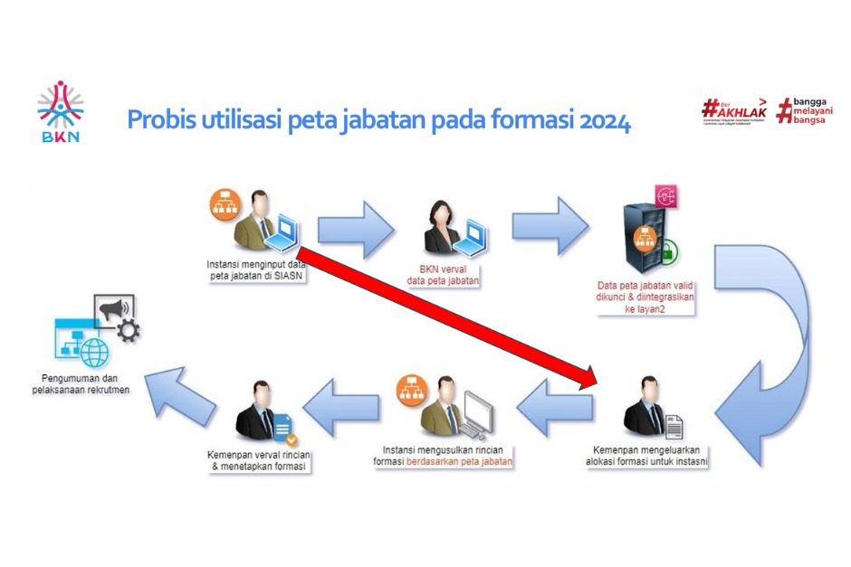 Jakarta – Humas BKN, Untuk mempercepat proses penetapan NIP CPNS dan PPPK 2024 pada Februari 2025 mendatang, Badan Kepegawaian Negara (BKN) melalui Pusat Rencana Kebutuhan (Pusrenhan) ASN, bersama dengan Direktorat PDPIK ASN dan Direktorat PPSI ASN, mendorong penyelesaian penyesuaian peta jabatan dan informasi jabatan pada SIASN Layanan Perencanaan Kebutuhan ASN. Penyesuaian peta jabatan ini sendiri dilakukan terhadap seluruh pengelola kepegawaian instansi pusat dan daerah melalui sistem berbagi pakai BKN, di mana masing-masing instansi mendapat akses sebagai admin dalam hal pengelolaan ASN di lingkup instansinya.