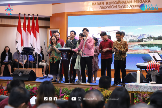 Perayaan Natal 2024 dan Ucapan Syukur Awal Tahun 2025 di lingkungan BKN ini sendiri dipandu oleh Pendeta I Nyoman Agus MP S.Th dan Romo Dr. Habel Jadera M.Hum., Lic. Miss.