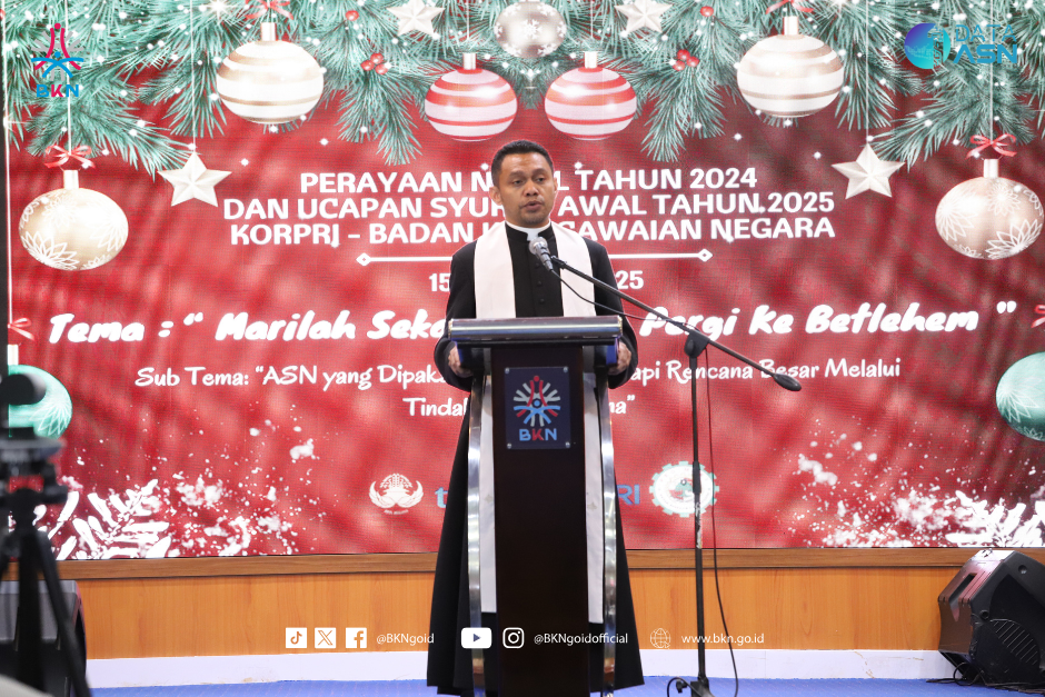 Perayaan Natal 2024 dan Ucapan Syukur Awal Tahun 2025 di lingkungan BKN ini sendiri dipandu oleh Pendeta I Nyoman Agus MP S.Th dan Romo Dr. Habel Jadera M.Hum., Lic. Miss.