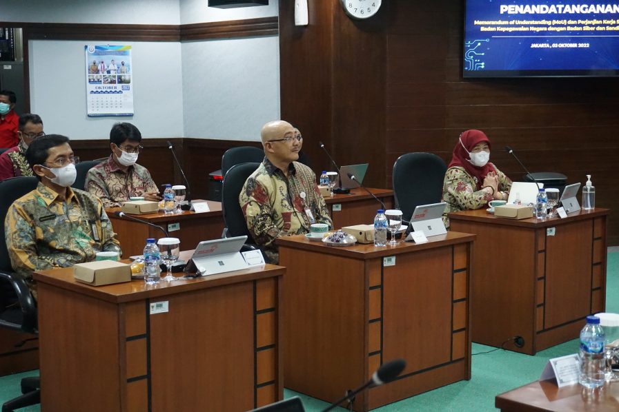 Jakarta – Humas BKN, Dalam rangka melakukan kerja sama dalam meningkatkan kualitas perlindungan informasi dan transaksi elektronik, Badan Kepegawaian Negara (BKN) melakukan penandatangan Memorandum of Understanding (MoU) dan Perjanjian Kerja Sama dengan Badan Siber dan Sandi Negara (BSSN) pada Senin (3/10/2022) di ruang data kantor BKN Pusat. Penandatanganan MoU antara BKN dan BSSN ini merupakan pembaharuan dari MoU Nomor 185/K/SK/XI/2009 dan Nomor KP.120/UM.4698A/2009 antara Badan Kepegawaian Negara dengan Lembaga Sandi Negara.