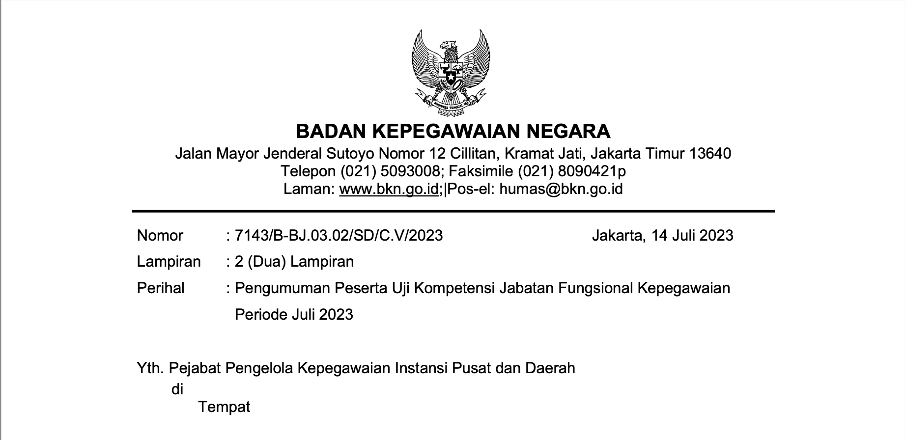 Pengumuman Peserta Uji Kompetensi JF Kepegawaian Periode Juli 2023