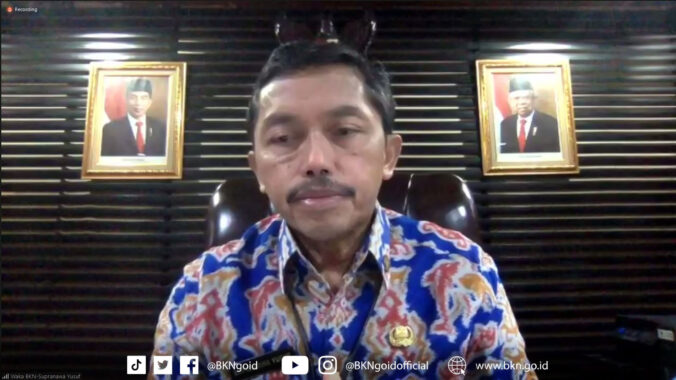 Pontianak-Humas BKN, Dalam perhelatan acara laporan Penilaian Potensi dan Kompetensi JPT Pratama, Administrator dan JF Madya pada Selasa (9/11/2021) di Bogor yang dilangsungkan secara serentak di tiga titik lokasi, Pusat Pengembangan Kepegawaian (Pusbangpeg) ASN, Kantor Regional (Kanreg) XI Badan Kepegawaian Negara (BKN) Manado dan Unit Penyelenggara Seleksi Calon dan Penilaian Kompetensi Pegawai ASN (atau lebih sering disebut UPT) BKN Pontianak, Wakil Kepala BKN Supranawa Yusuf menyampaikan apresiasinya terhadap animo peserta yang cukup tinggi dalam mengikuti acara ini. “Ini menunjukkan bahwa kesadaran kita semua sudah meningkat, mengenai perlunya penilaian potensi dan kompetensi ASN.”