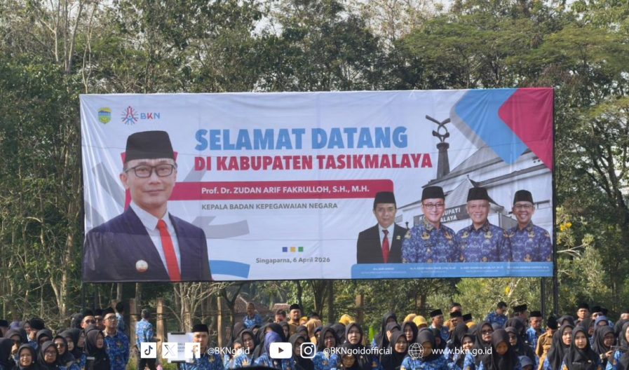Sebagai instansi pembina manajemen ASN, Prof. Zudan memperkenalkan pendekatan kerja yang kini didorong BKN, yakni prinsip layanan berorientasi *4K: kemudahan, kecepatan, kemanfaatan, dan kebahagiaan*. “Ukuran keberhasilan ASN tidak lagi cukup pada tertib prosedur, tetapi pada dampak nyata layanan publik. Lebih dari itu, ASN harus memastikan setiap layanan itu mudah, cepat, memberi manfaat, dan menghadirkan kebahagiaan bagi masyarakat,” tegasnya, Senin (06/04/2026) di Lapangan Upacara Sekretariat Kabupaten Tasikmalaya, Jawa Barat.