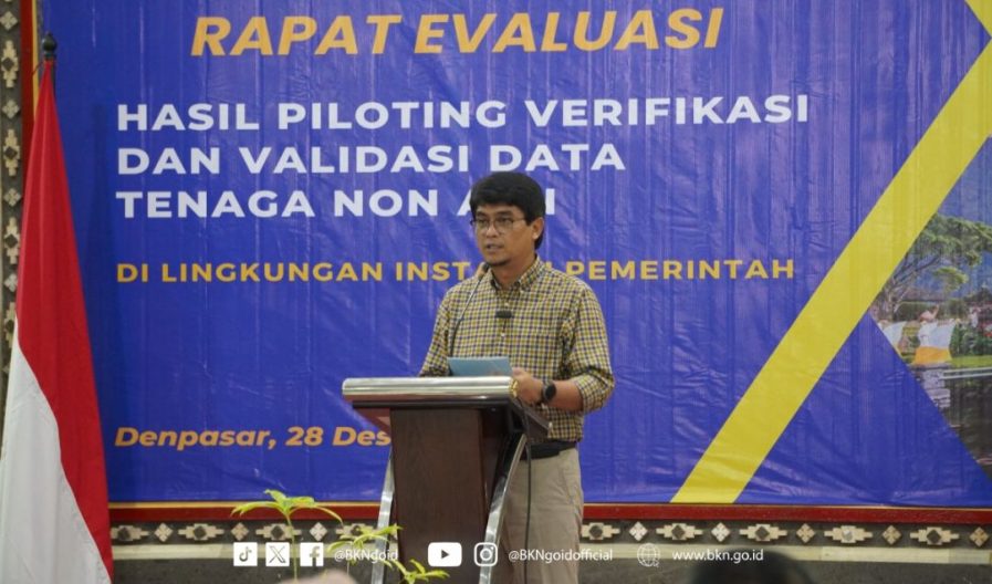 Denpasar – Humas BKN, Badan Kepegawaian Negara (BKN) melaksanakan kegiatan Evaluasi Hasil Piloting Verifikasi dan Validasi Data Tenaga Non ASN di Lingkungan Instansi Pemerintah pada Kamis (28/12/2023) bertempat di Kantor Regional X BKN, Denpasar. Acara diselenggarakan dalam rangka penyusunan Rancangan Peraturan Pemerintah (RPP) Manajemen ASN yang merupakan turunan dari Undang-Undang Nomor 20 Tahun 2023 tentang Aparatur Sipil Negara, serta Percepatan Penataan Tenaga Non-ASN.